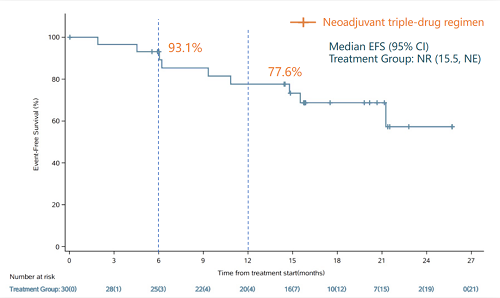 对于经新辅助治疗后获得pCR或MPR的患者,其12个月的无复发生存(RFS)率为100%。